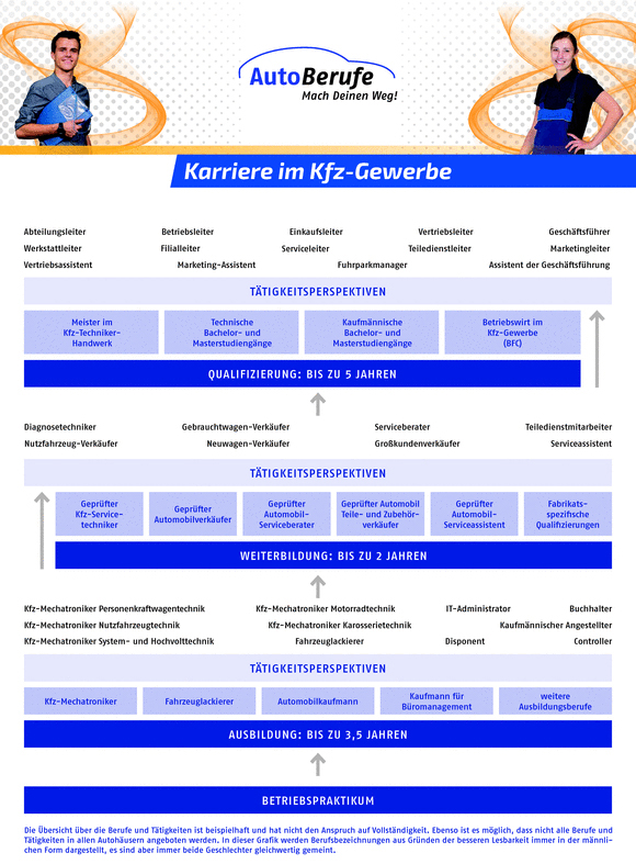 Ob Kraftfahrzeug-Mechatroniker, Fahrzeuglackierer oder Automobilkaufmann - diese drei Berufe sind nur ein Ausschnitt der vielen beruflichen Möglichkeiten, die Euch das Kfz-Gewerbe bietet.